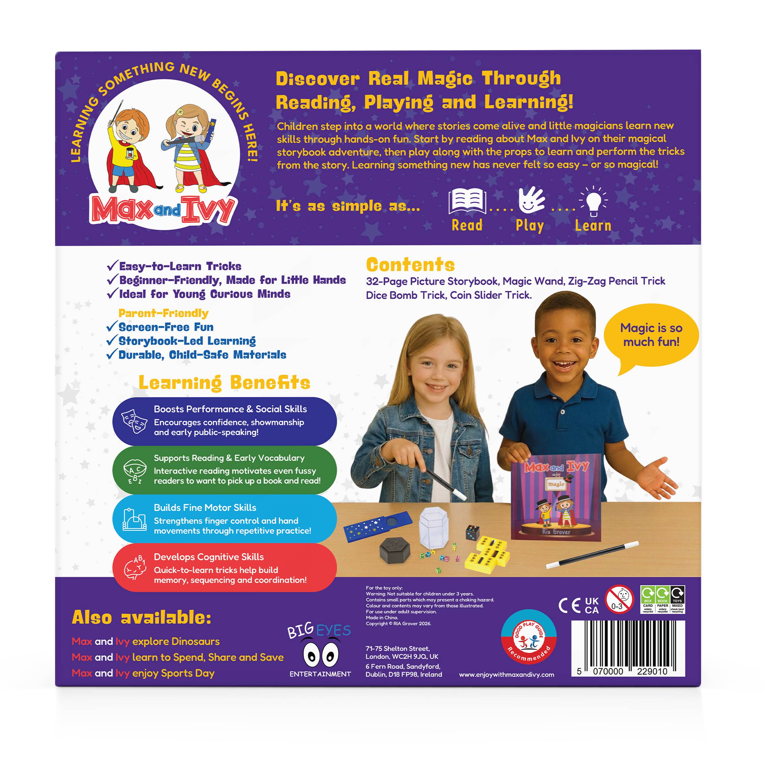 Max and Ivy discover Magic is a beginner set for children aged 3–7, based on the Read, Play, Learn concept. The beautifully illustrated storybook introduces Max and Ivy as they explore the world of magic, while the accompanying magic tricks bring the story to life through hands-on fun