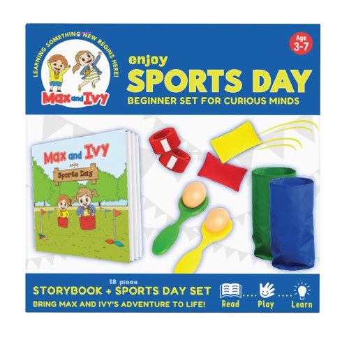 Max and Ivy enjoy Sports Day is a beginner set for children aged 3–7, based on the Read, Play, Learn concept. The beautifully illustrated storybook follows Max and Ivy at their first Sports Day, while the accompanying sports and games encourage movement, confidence, and hands-on learning.